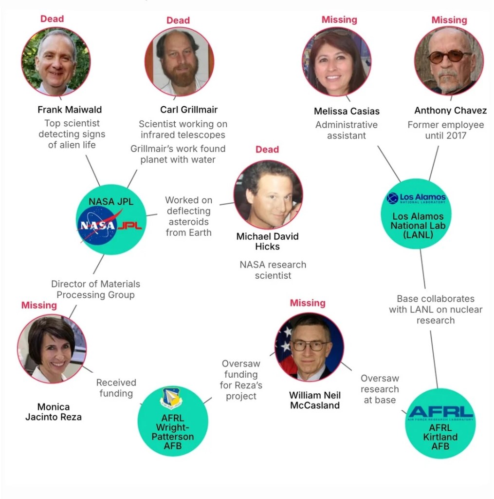 I don’t know if this is just coincidence, however, I find it highly suspicious. The death of another scientist linked to secret US space programs The death of NASA research scientist Michael David Hicks of the Jet Propulsion Laboratory (JPL) is being reported as the ninth in a series of deaths or disappearances of experts with ties to sensitive US space and nuclear programs.