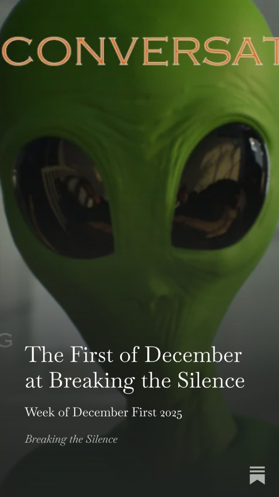 First of December at BTS https://open.substack.com/pub/breakingthesilence001/p/the-first-of-december-at-breaking?r=3eq3yi&utm_campaign=post&utm_medium=web&showWelcomeOnShare=true